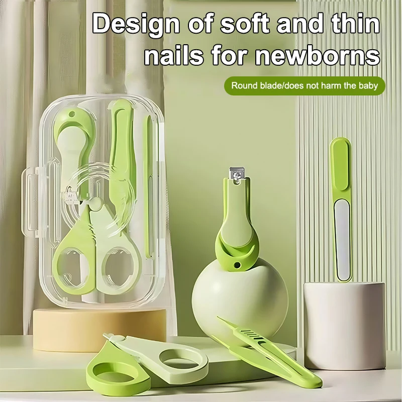 4PCS Newborn Baby Nail Scissor Baby Nail Care Tool Kid Safe Portable Nail Clipper Trimmer Tweezer With Box Children Manicure Kit