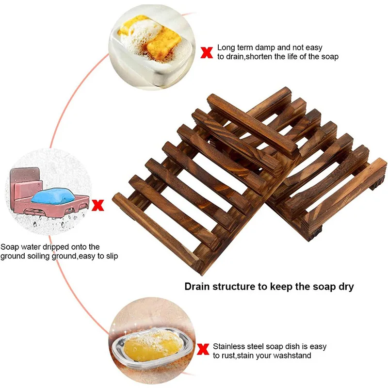 Creative Wooden Soap Holder Drainage Rack Carbonized Bamboo Bathroom Organizer for Shower Shelf Non Slip Soap Tray Ventilation