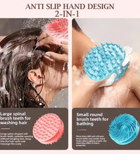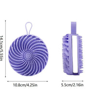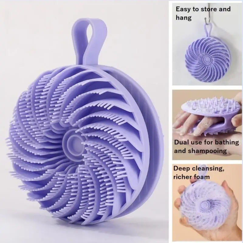 2. One side serves as a bodyscrubber loofah, while the acts as a shampoobrush. lt's an innovative solution for your daily groomingneeds.