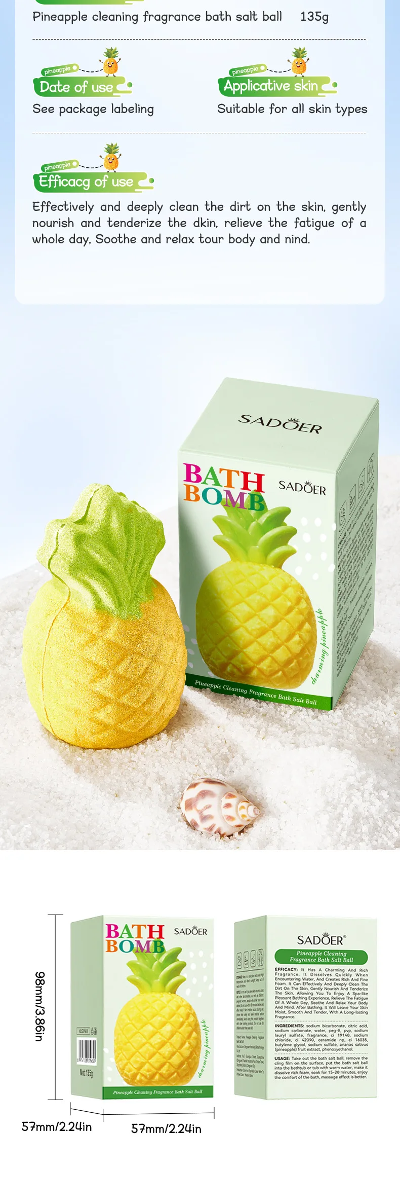 SPECIFICATIONS Choice: yes High-concerned chemical: None Item Type: Soap Natural Mineral Salt Stress Relief: The salt bath ball in the gift box contains high-purity sea salt, Dead Sea salt and other natural mineral...