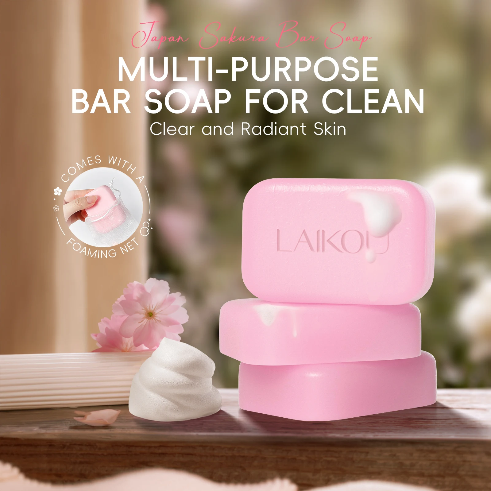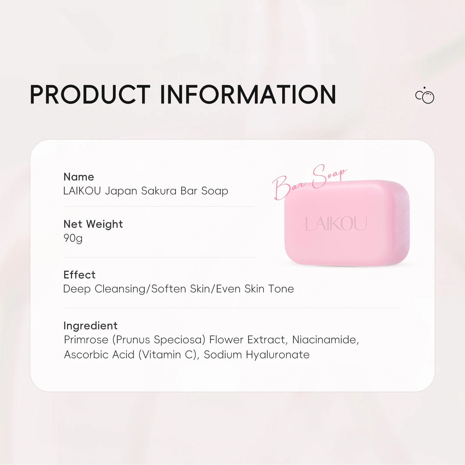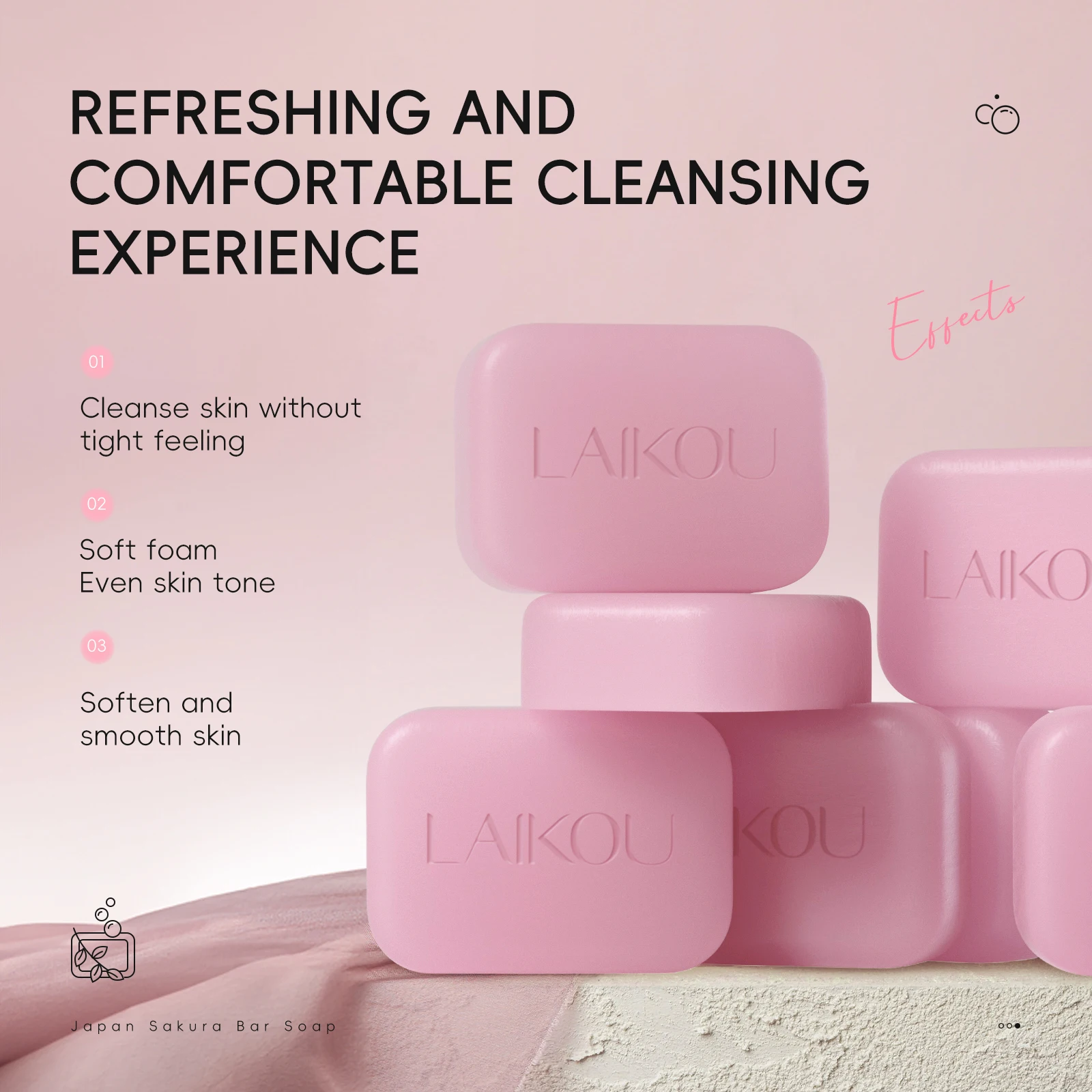 LAIKOU Japan Sakura Bar Soap 5pcs Deep Cleansing Soften Skin Even Tone 90g