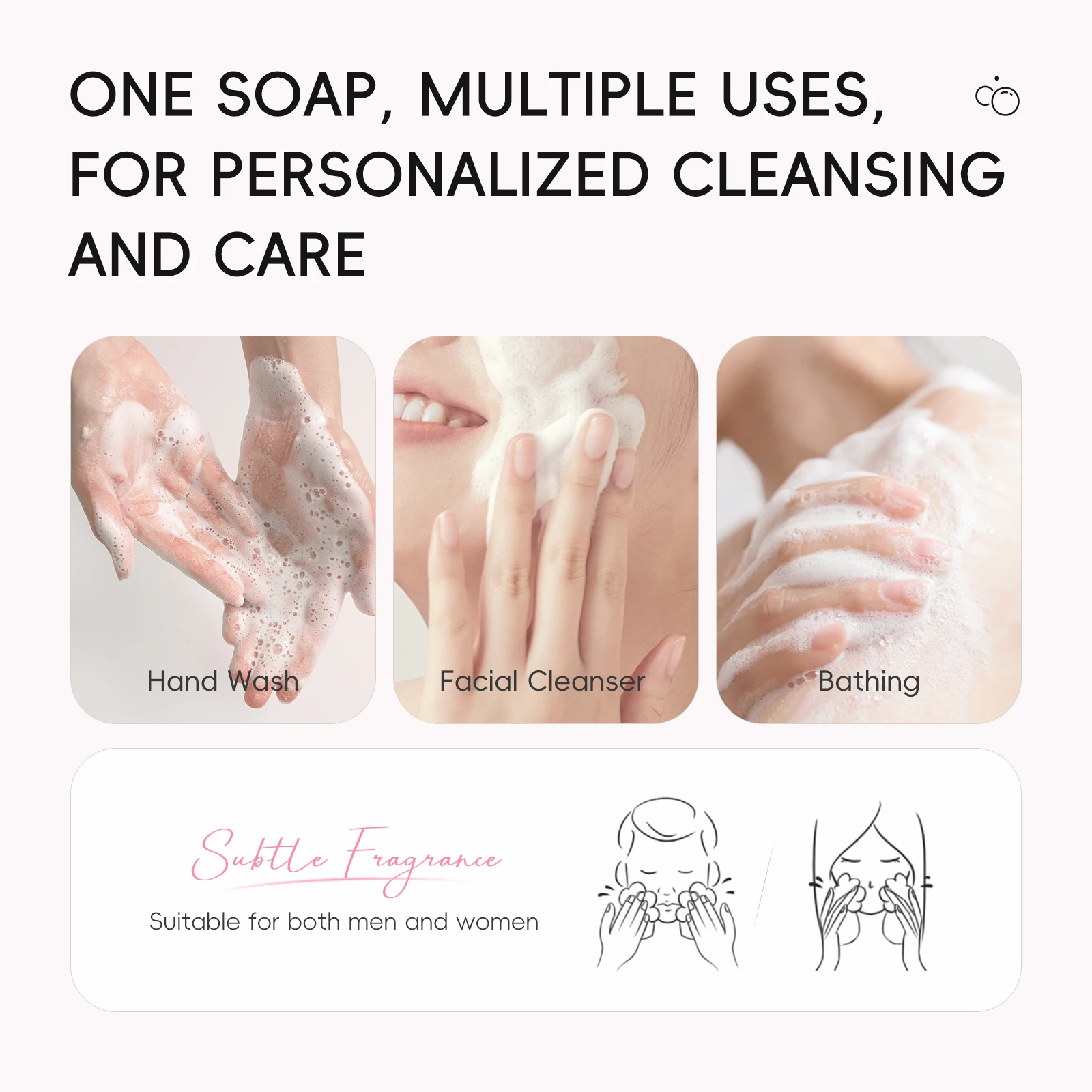 This bar soap does wonders! It offers deep cleansing, gets rid of dirt and oil. Softens your skin, making it touchably smooth. Also evens out skin tone for a radiant look. ✨