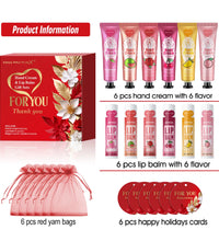 24PCS/box lip balm in bulk, hand cream in bulk thank you card and red gauze bag, wedding gift to guests, Christmas and New Year