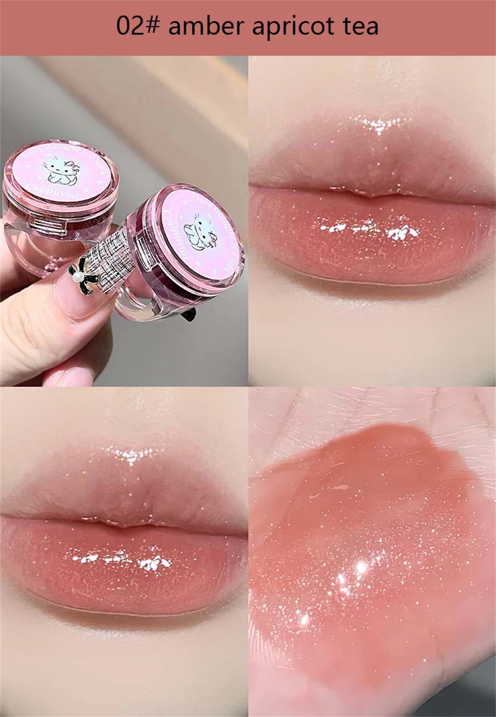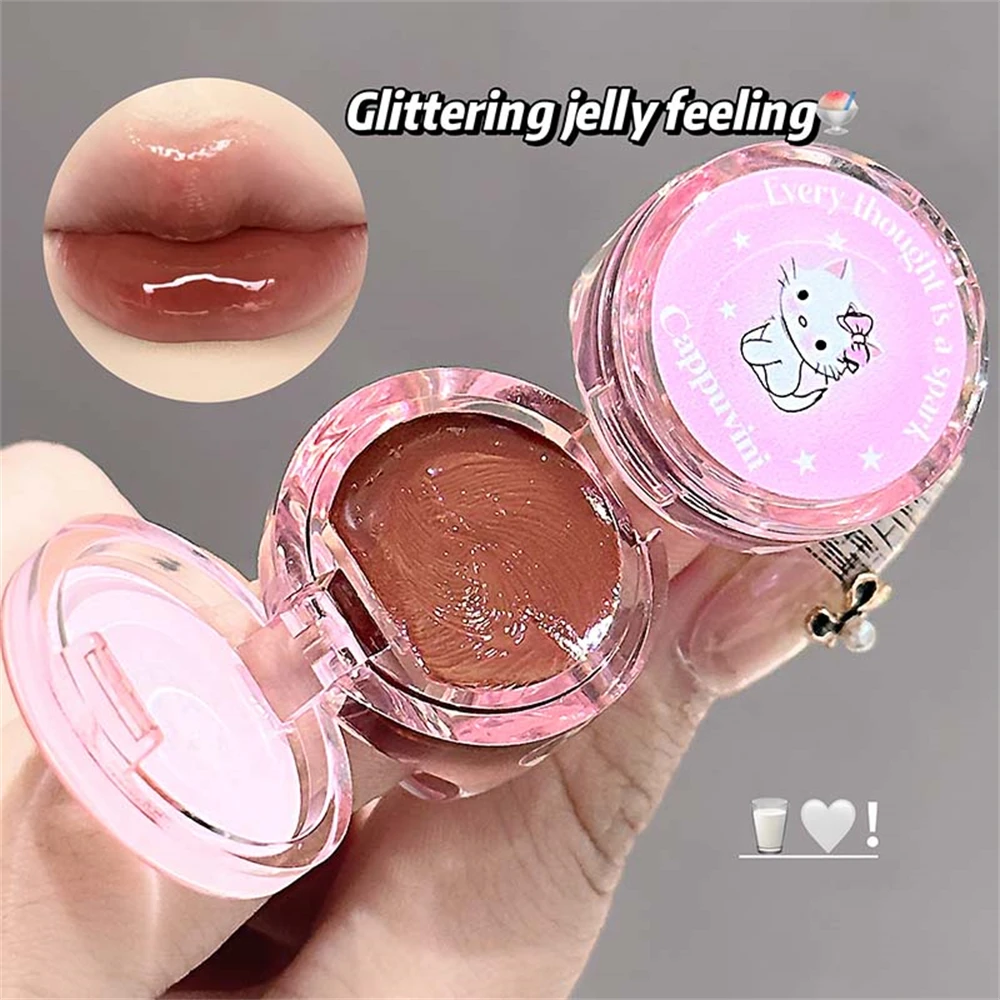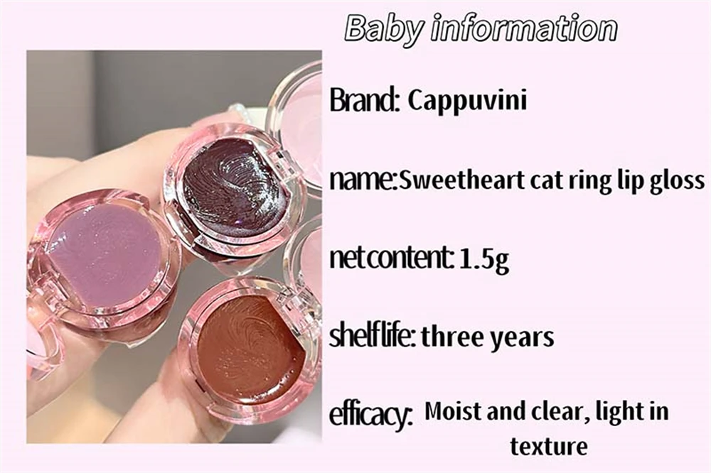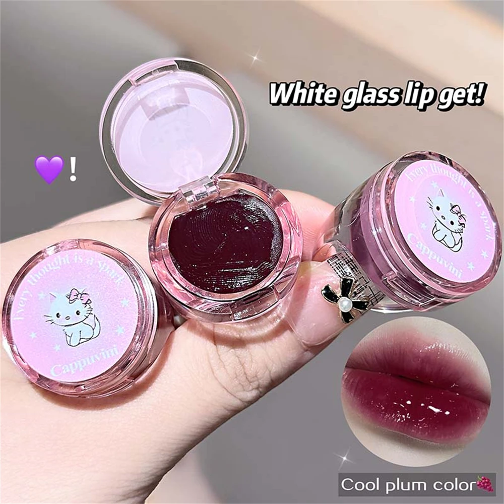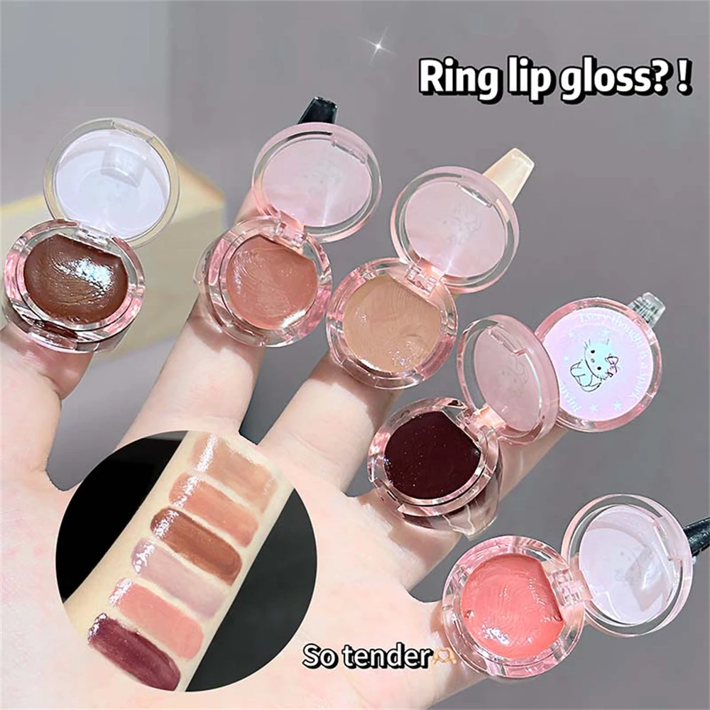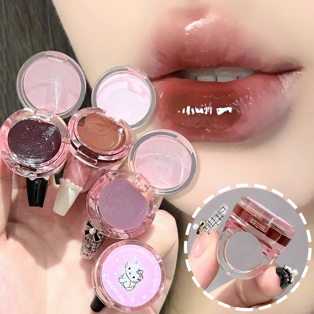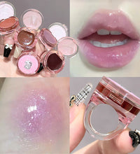 Crystal Grape Mirror Glassy of Cute Ring Lipstick Hydrating Sheer Glitter Tint Lip Balm Non-Sticky Plumper Lip Gloss Makeup