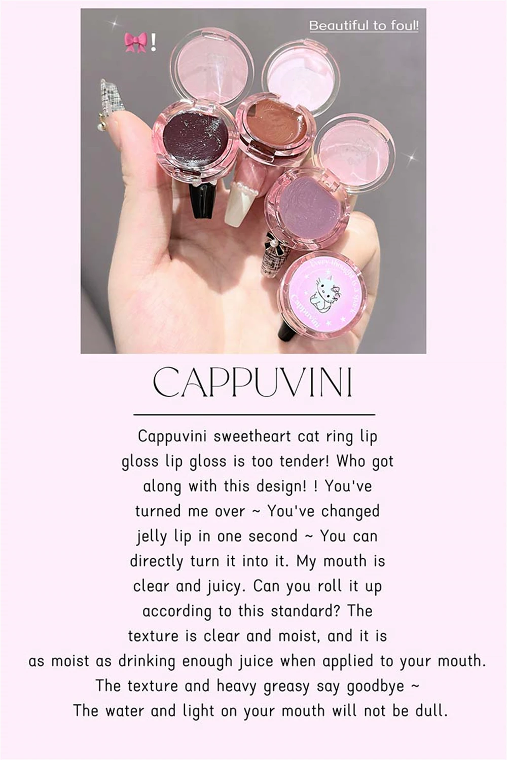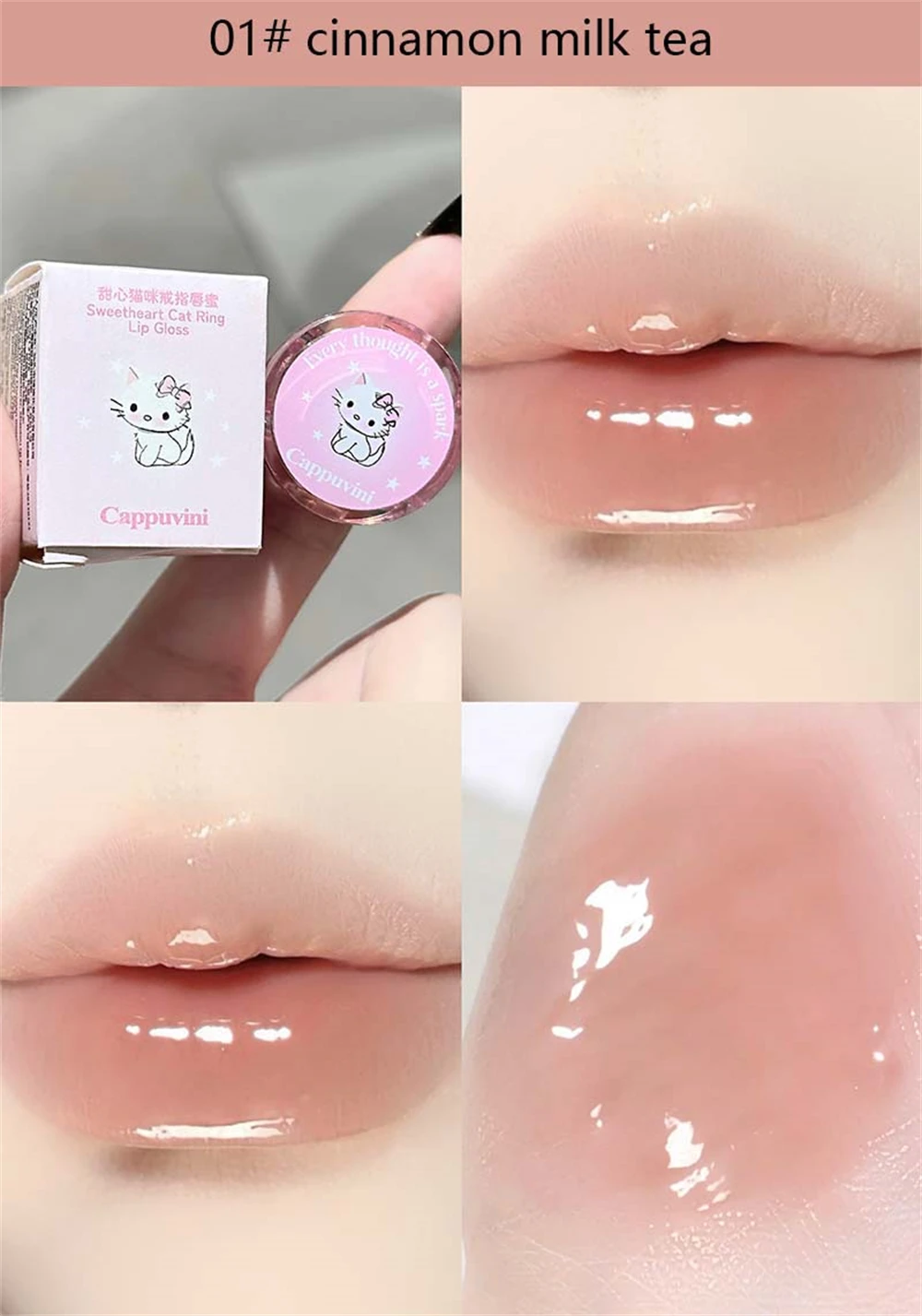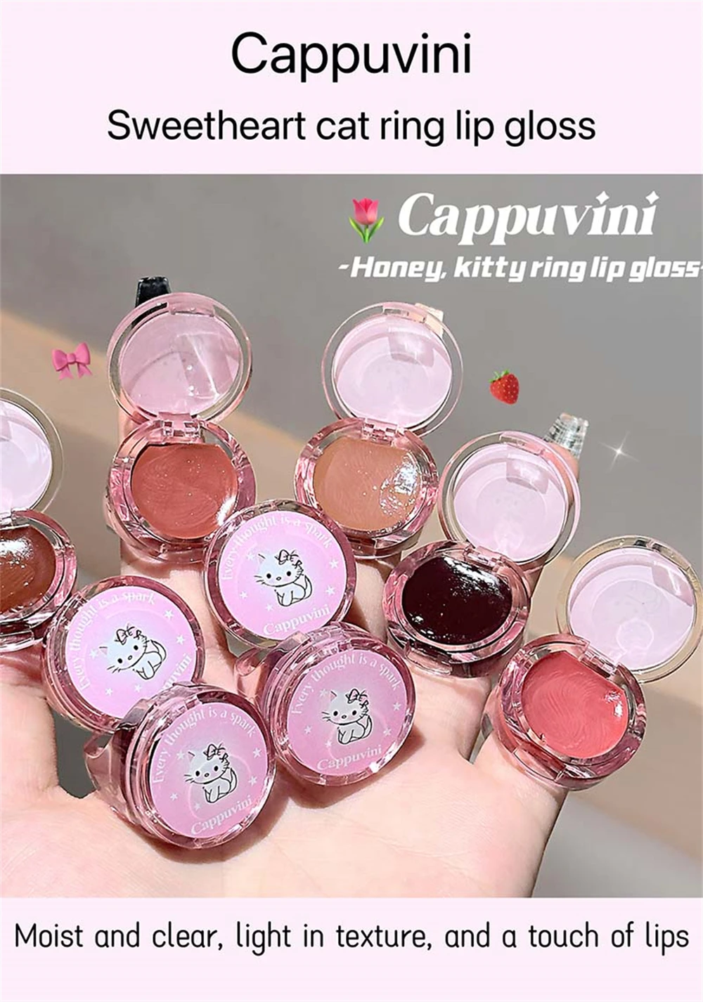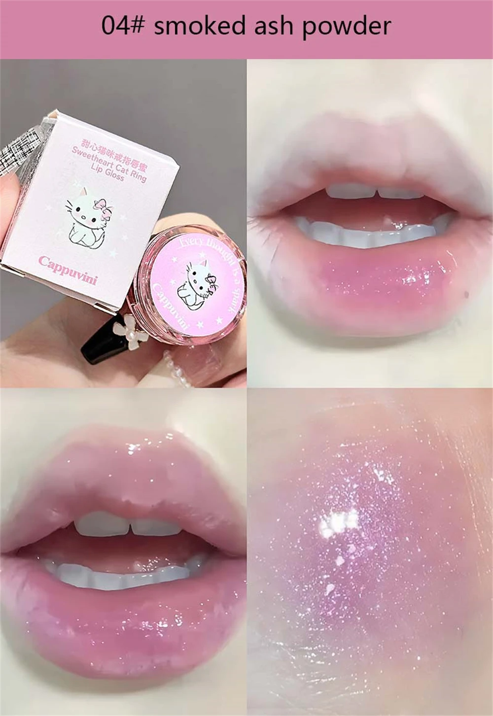 Crystal Grape Mirror Glassy of Cute Ring Lipstick Hydrating Sheer Glitter Tint Lip Balm Non-Sticky Plumper Lip Gloss Makeup