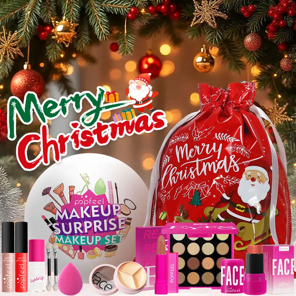 POPFEEL Christmas Surprise Makeup Ball Gift Set-9-Piece Cosmetic Collection with Eyeshadows and Lipsticks - Perfect Holiday Gift