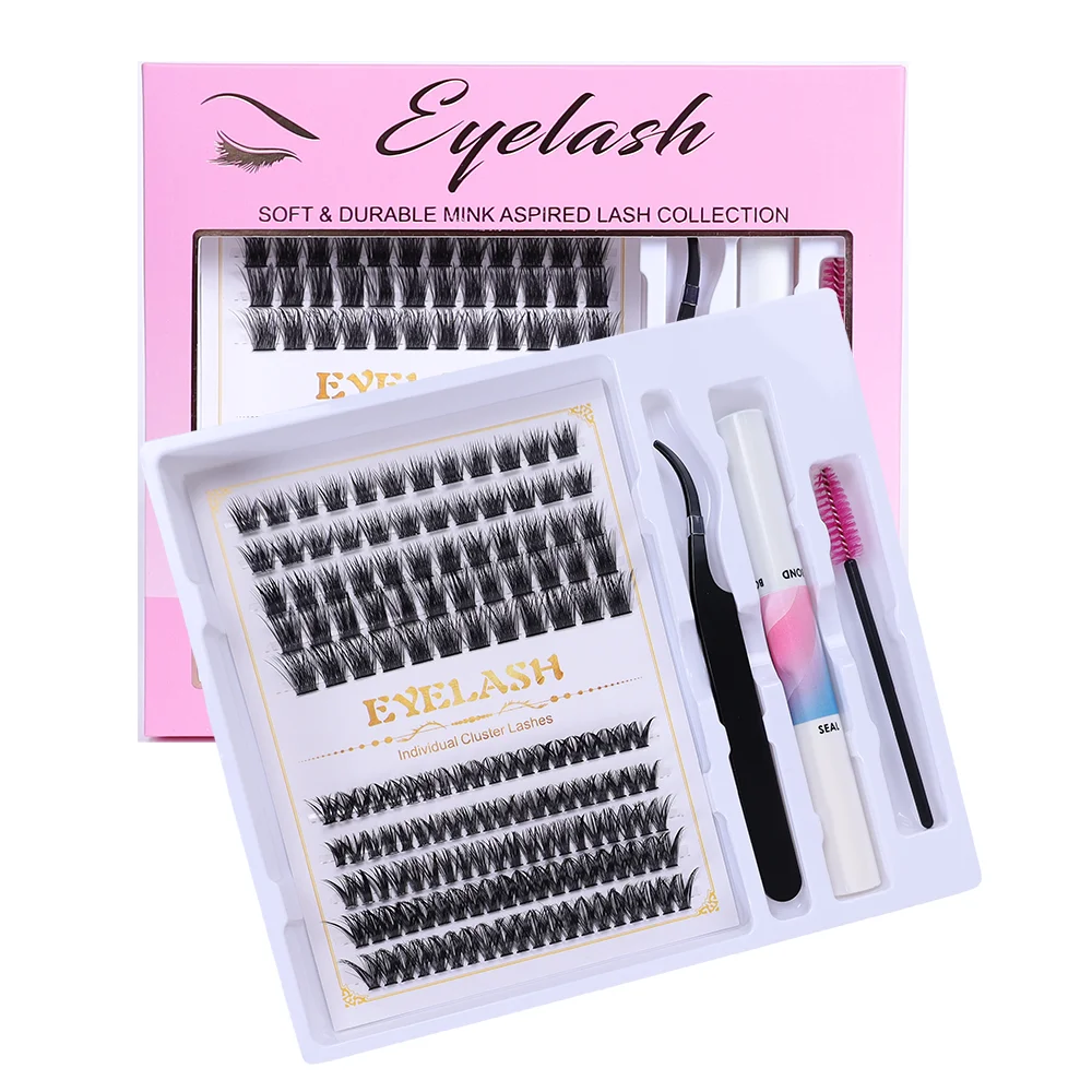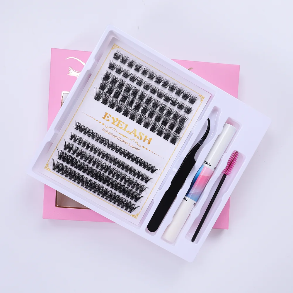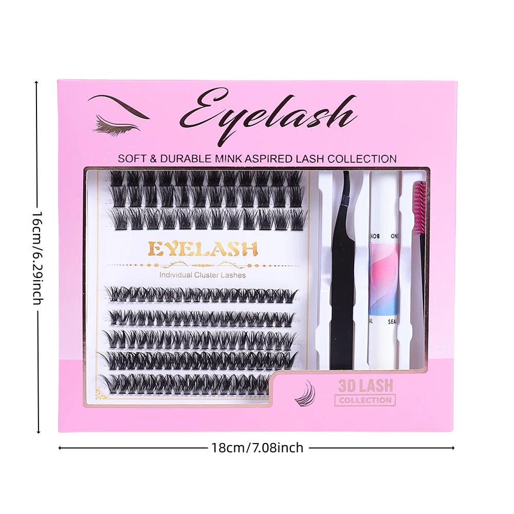 1 box of 160 DIY eyelash extension kit, containing 160 complete clusters of false eyelashes, packaged in a delicate gift box, in