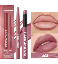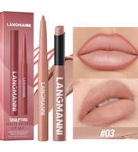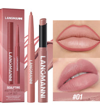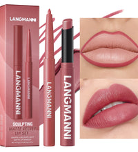 Integrated waterproof lipliner+lipstick lipstick lipstick set,no smudge,no fade,no cup,durable,easy to create a perfect makeup!