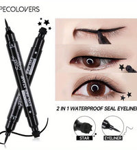 2 In 1 Black Liquid Eyeliner Double-head Moon Stamp Eye Liner Pencil Quick Dry Non-Smudge Long-lasting Easy to Use Eye Makeup