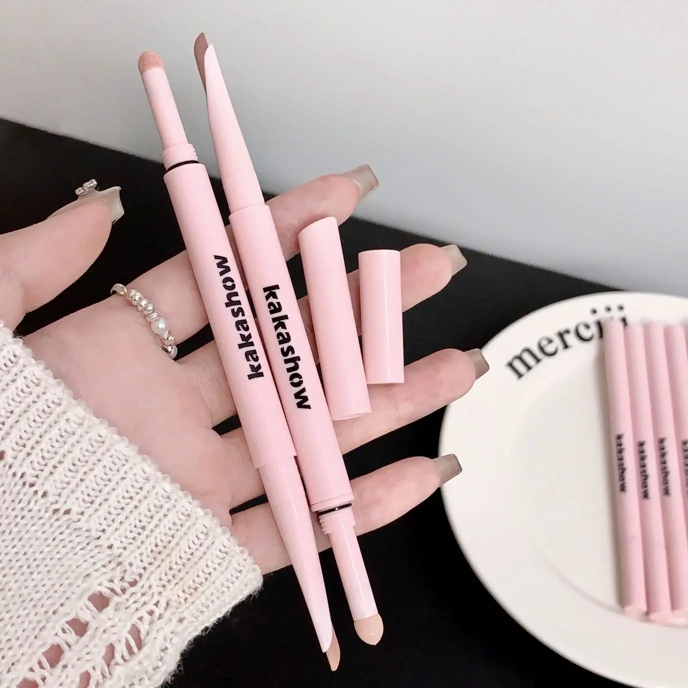 · The Lying Silkworm pen end is designed with a soft sponge head, which can be evenly applied to make the area of the lying silkworm look naturally full. The end of the shadow stick has a meniscus design, and the texture of the cream glue pen is smooth to use.