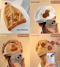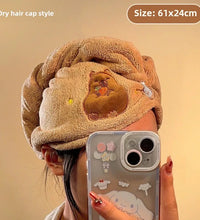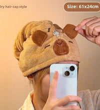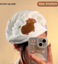Capybara Dry Hair Cap Coral Fleece Quick Dry Towel Super Absorbent Capybara Head Turban Cute Animal Soft Hair Wraps for Women