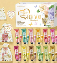 12 Hand gift Hand cream and lip balm set Friends Party Gift with love net bag and thank you card Holiday gift