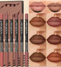 6pcs ROZZA Nude Lip Liner Set - Water-Resistant, Matte Finish Crayon Lip Pencils Non-Smudging & Easy-to-Apply