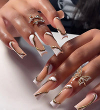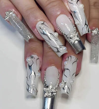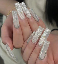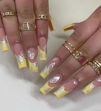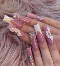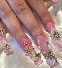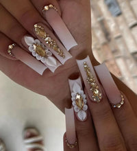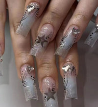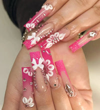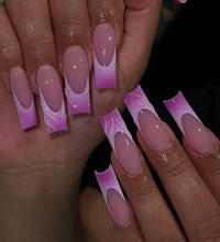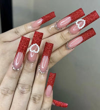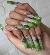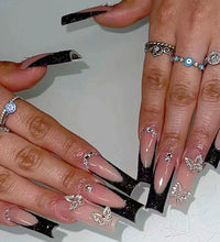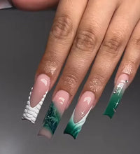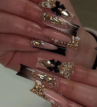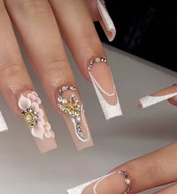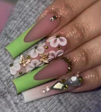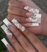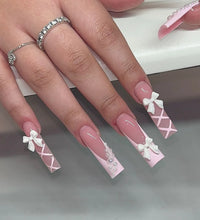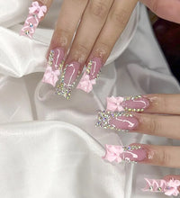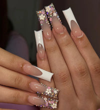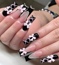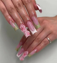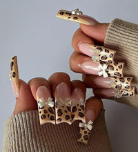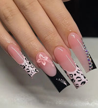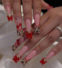 24Pcs Long Square Press on Nails Leopard Print French 3D Cherry Design False Nail Rhinestone Wearable Full Cover Fake Nails Tips