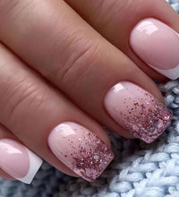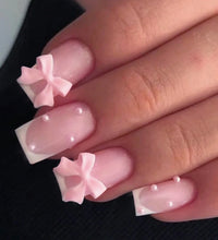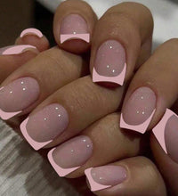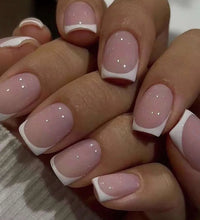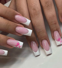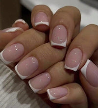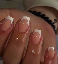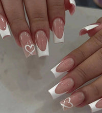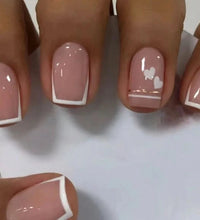 24pcs/set short square fake nails for women cute bride heart white french tips faux ongles y2k press on false nail supplies