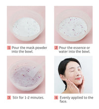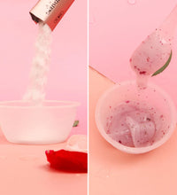 1. After cleansing, apply Mask Powder into a clean bowl, adding Hyaluronic Acid or water.