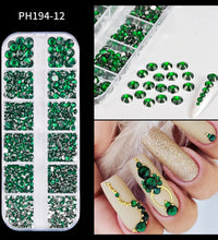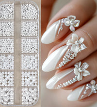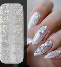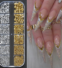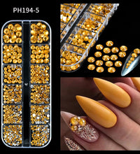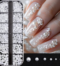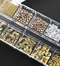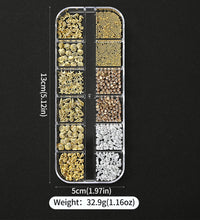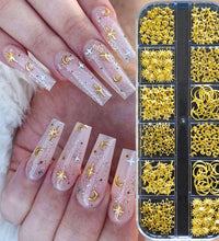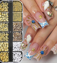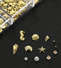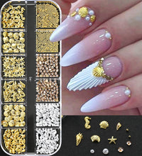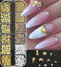 12Grids Ocean Gold Nail Art Charms Shell/Seahorse/Starfish White Half Round Pearl Gems 3D Mixed Punk Manicure Metal Rivets Studs