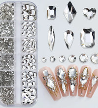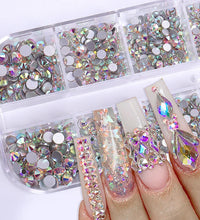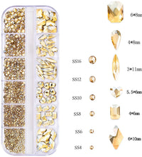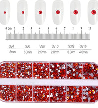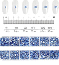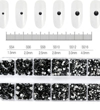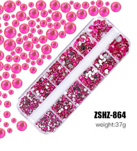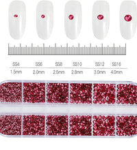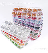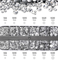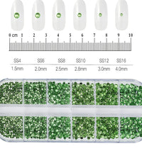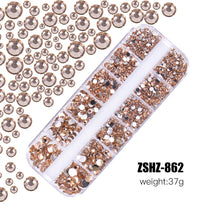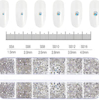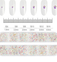 1.5mm-5mm Champagne Glass Crystal Nail Art Gems 12grids Flatback SS4-SS16 Mixed Nail Art Rhinestone Hotfix Diamond Nail Charms