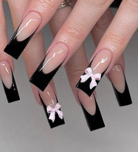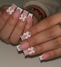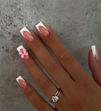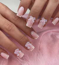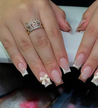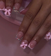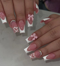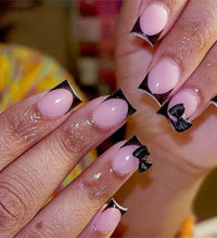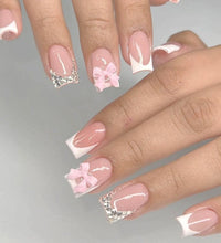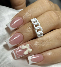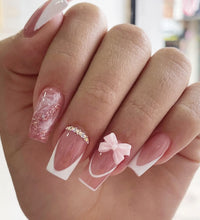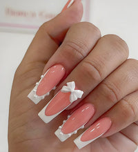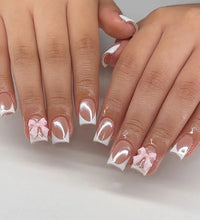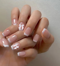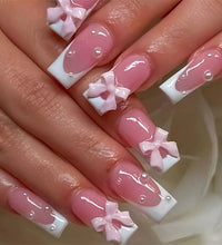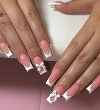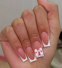 Elegant Design: This set includes 24pcs of french fake nails with a resin white square nail tips adorned with bowknot design, perfect for women and girls' party activities.