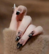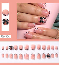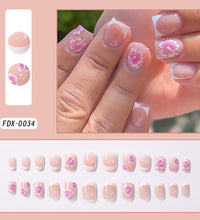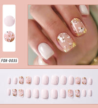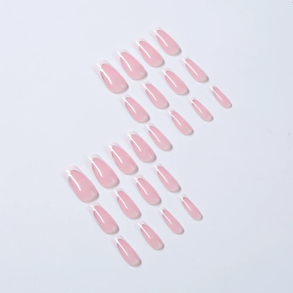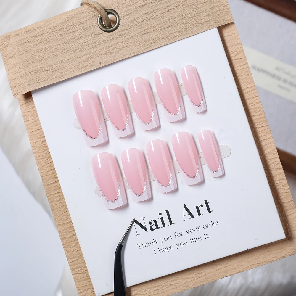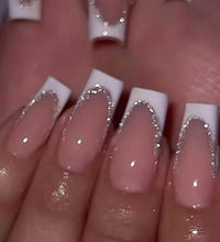 24Pcs Short Square Coffin False Nails French Glitter Wearable Fake Nails Acrylic Full Cover Women Ballet Press on Nails Tips