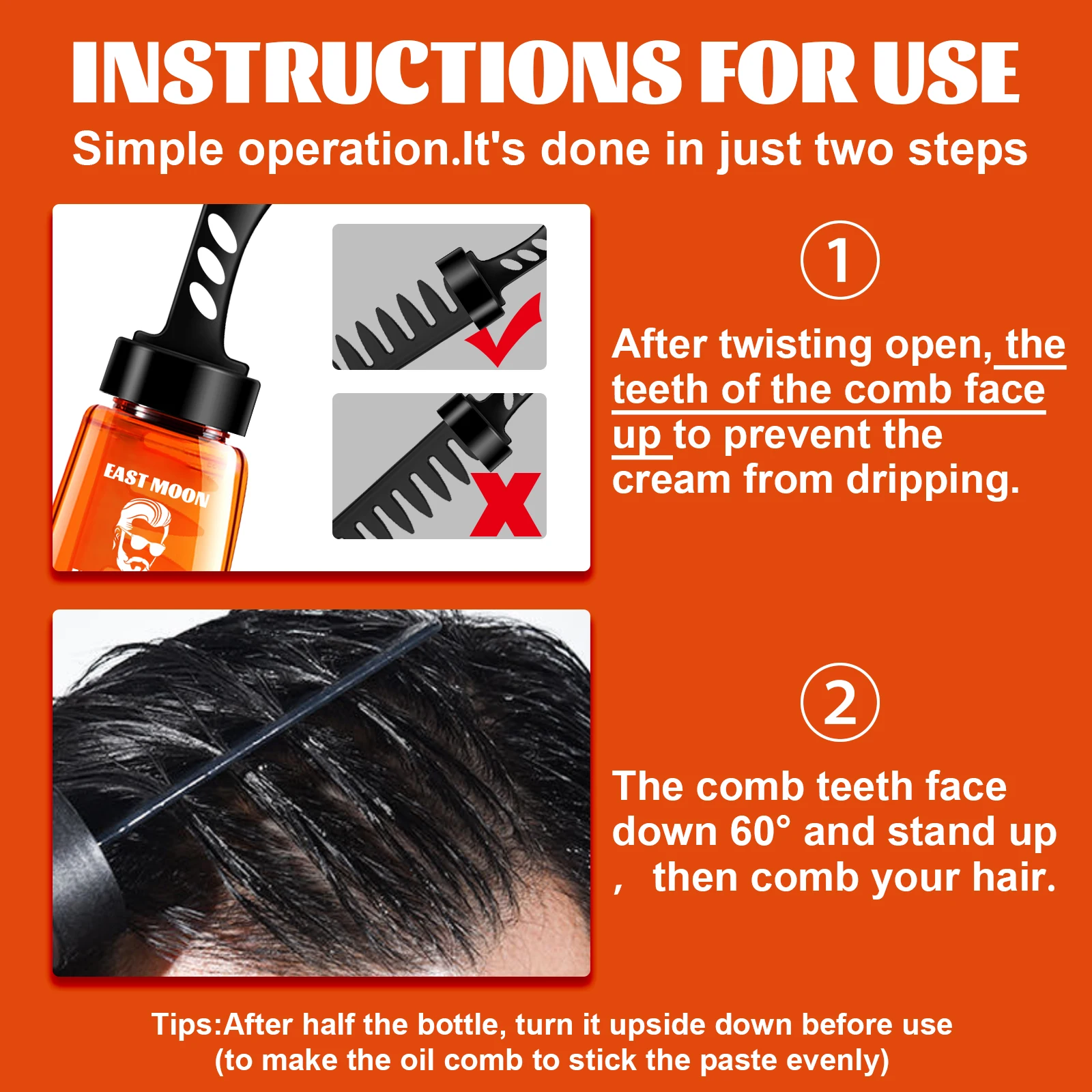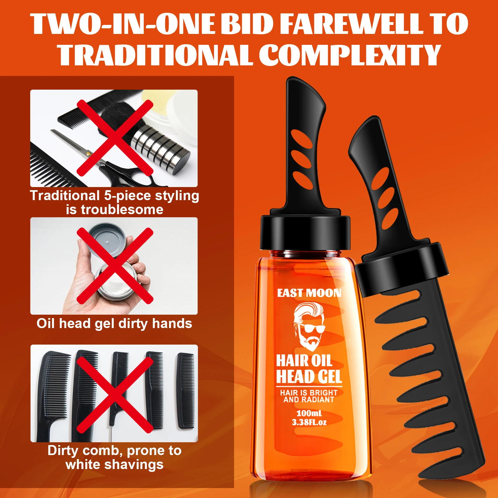 East Moon 2 in 1 Men Hair Wax Comb Long Lasting Fluffy Fresh Strong Hold Versatile Styling Hair Gel Edge Control Hair Care