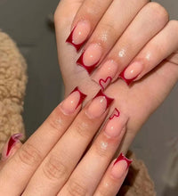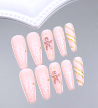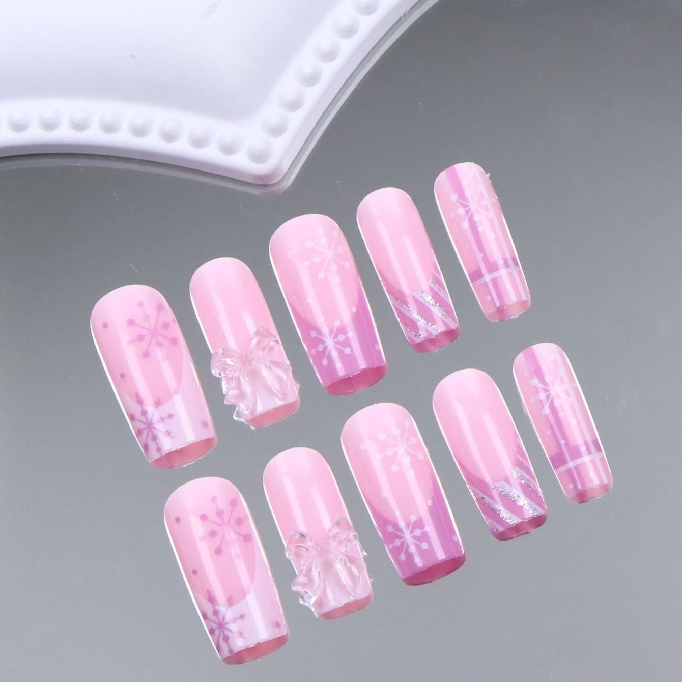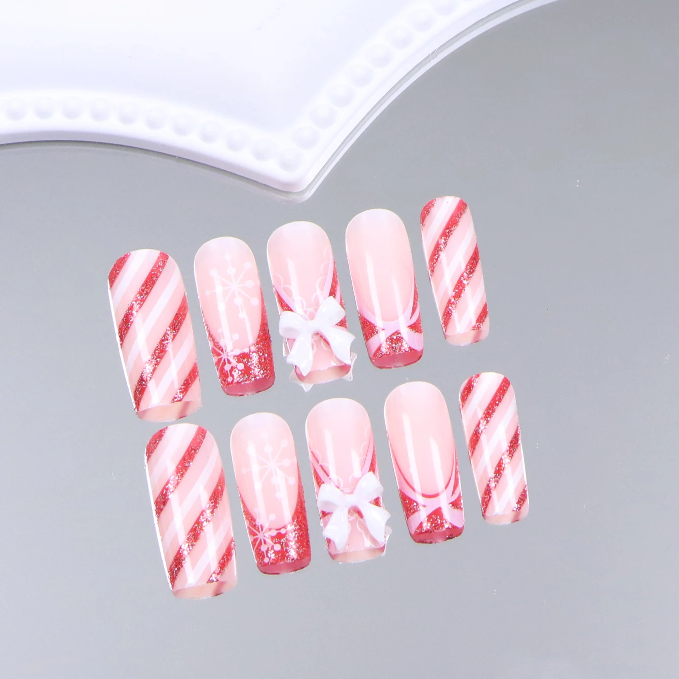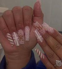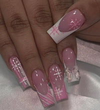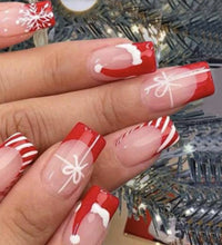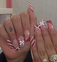 24PCS Rectangular false nails, snowflake striped gingerbread Design, Christmas False Nails, Acrylic Artificial Rubber Nails