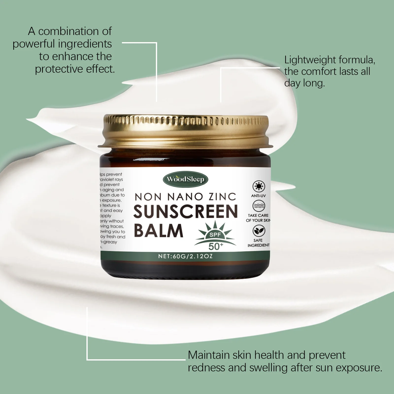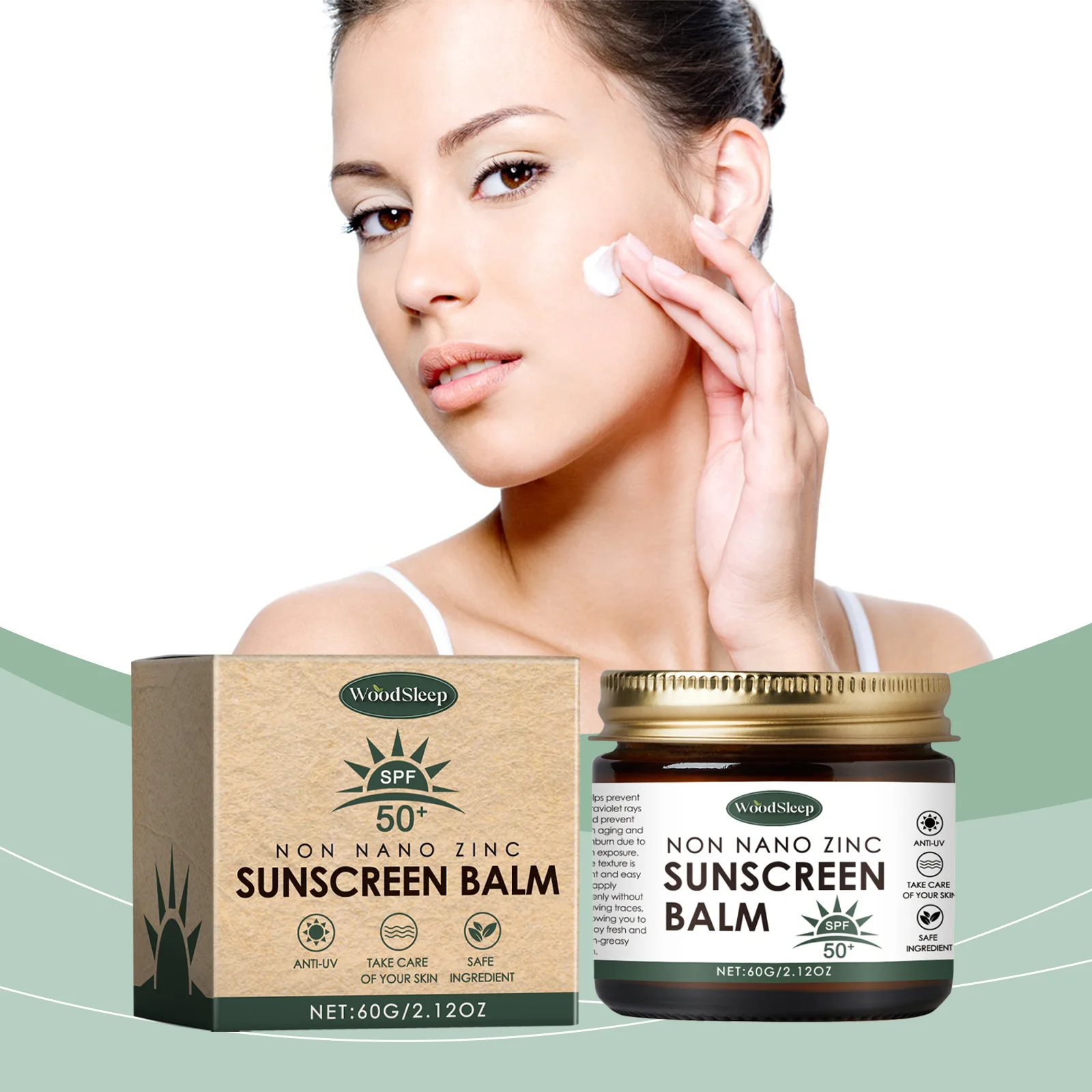 Woodsleep Sunscreen Spf 50 Anti UV Anti-Aging Shrinking Pores Refresh Oil Control Sweat Proof Water Moisturizing Sun Cream for Face Body 60g
