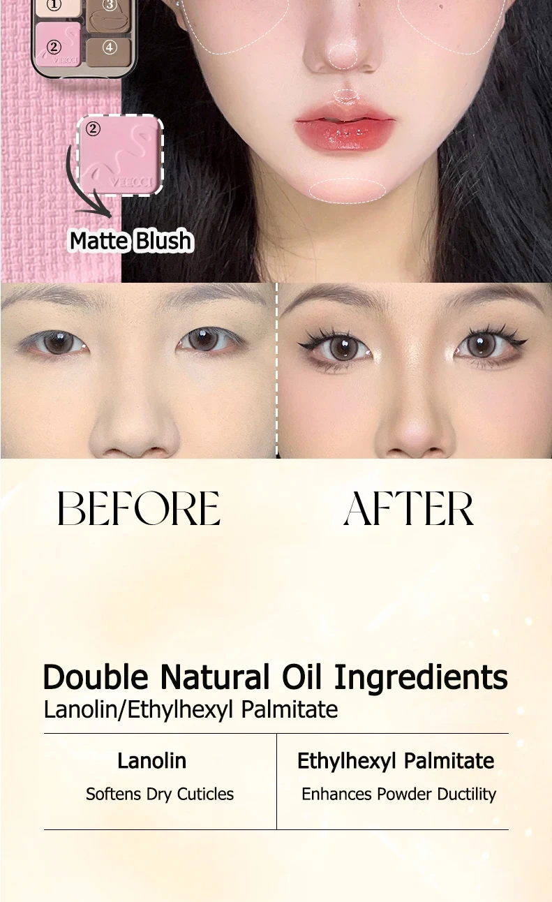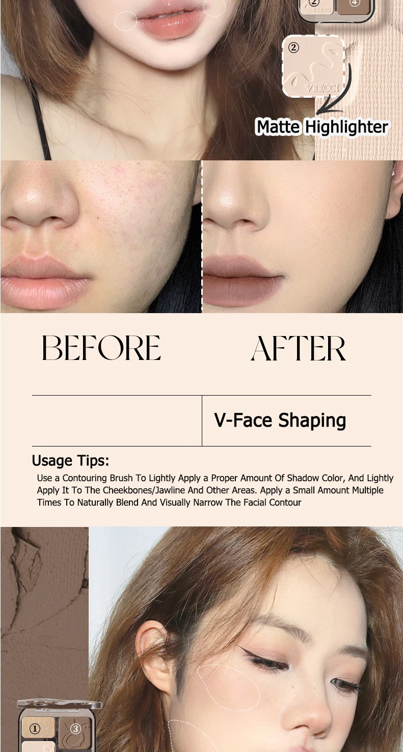 The VEECCI contour palette offers a long-lasting formula that keeps your makeup fresh all day.